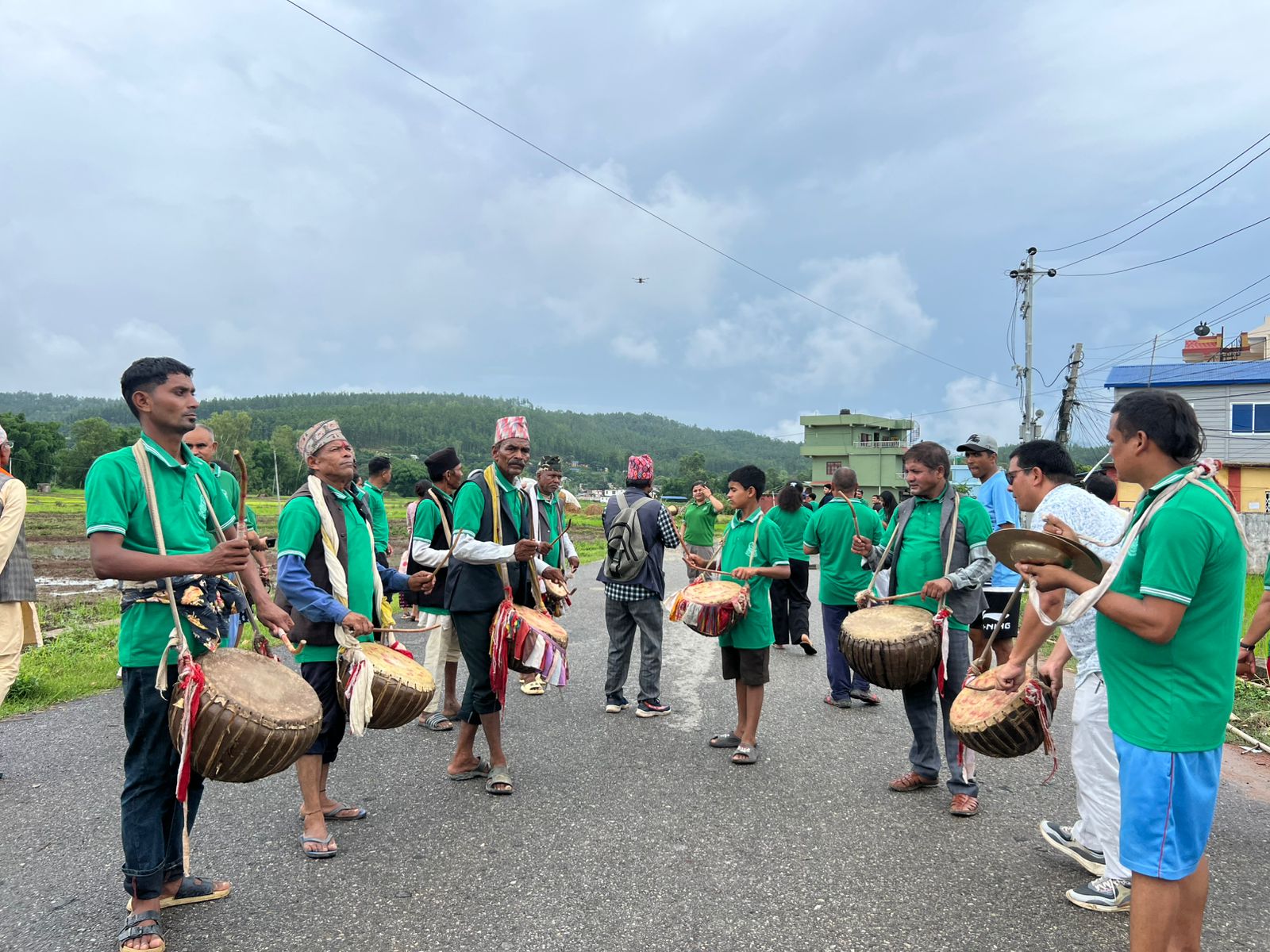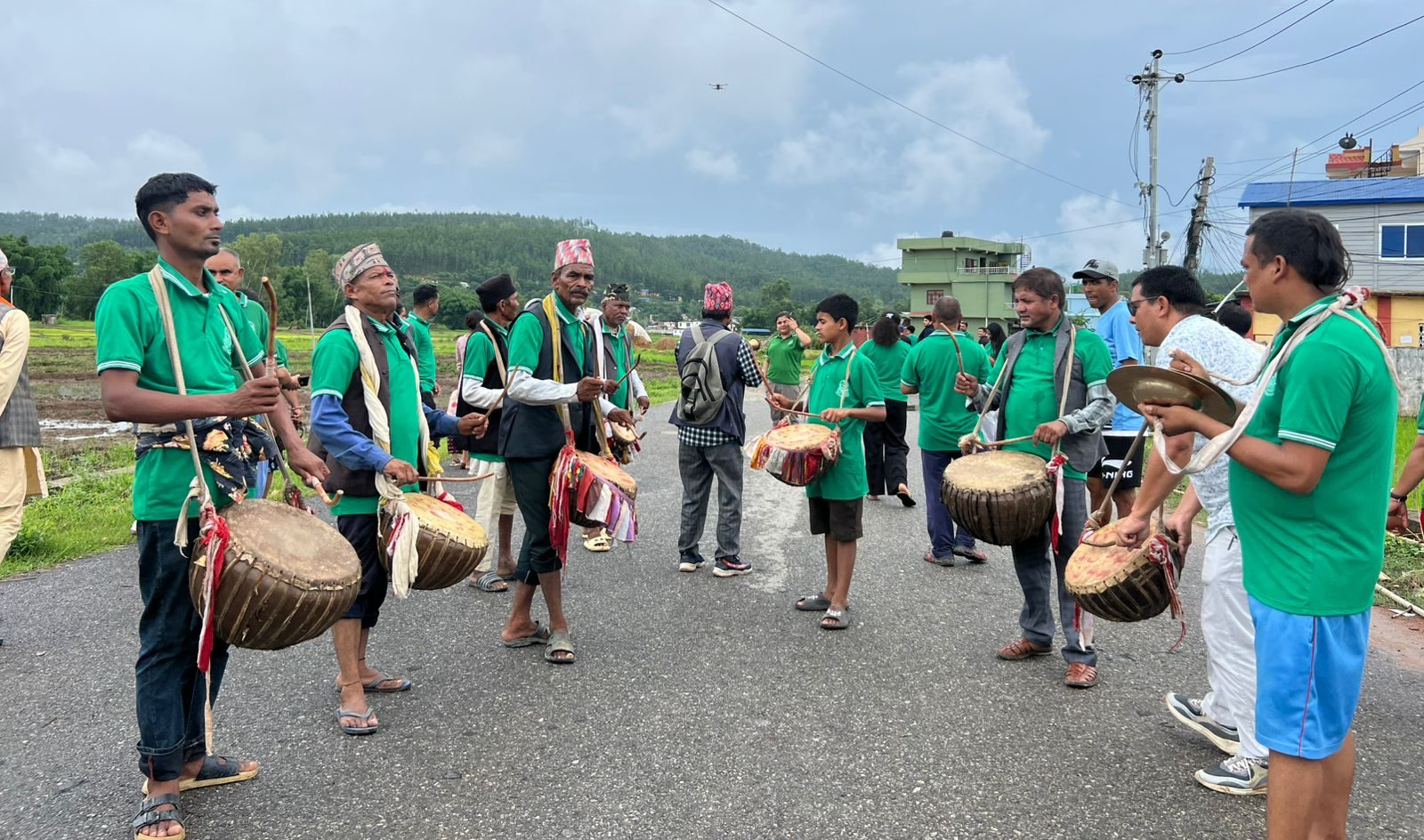 Photo 3: Traditional Panche Baja adding cultural rhythm to the Rice Day celebration at Surkhet