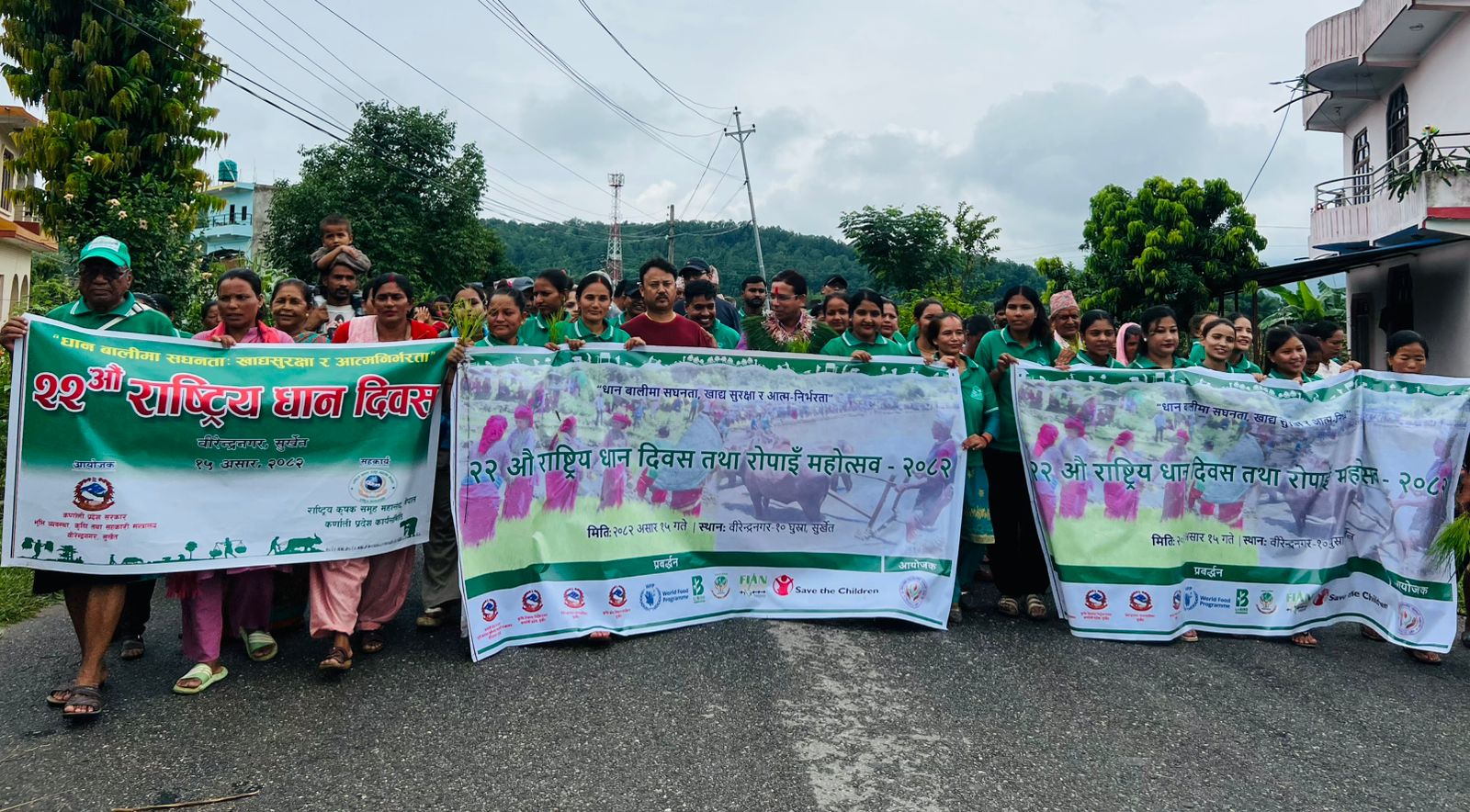 22nd National Rice Day “Dhan Diwas” was celebrated on 15th Ashad with great enthusiasm and collective spirit across the country, organizing various programs and events. Since 2061 B.S, Asar 15 has been marked as the National Rice Day and celebrated across the country as a festival. This day highlights the profound relationship between rice, livelihood, culture, and food security of the Nepali people, acknowledging the hard work and contribution of the farmers. Rice, as the major staple food for the majority of Nepalese, it is intertwined with the country’s economy, tradition, and culture. It contributed nearly 50 percent of the national food grain demand.